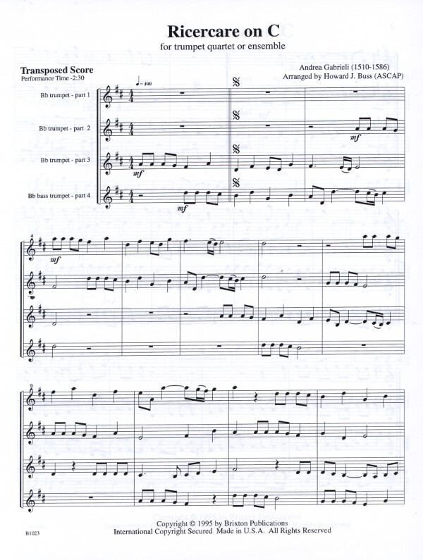 (1510-1586, gut geeignet zur Eröffnung eines Kirchenkonzertes, 2:30 Min.) für 4 Trompeten in B oder 3 Trompeten + Posaune