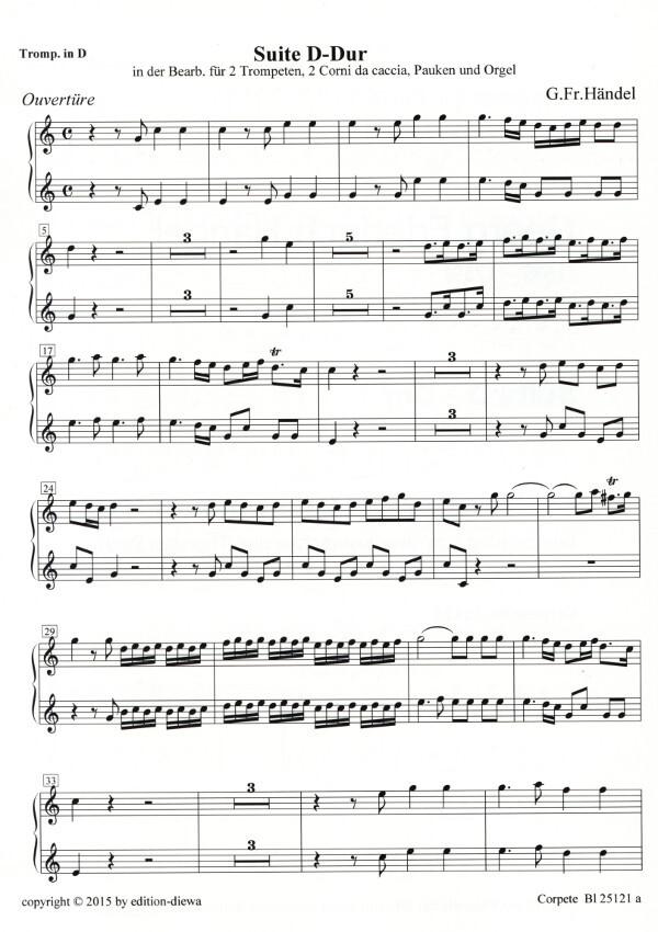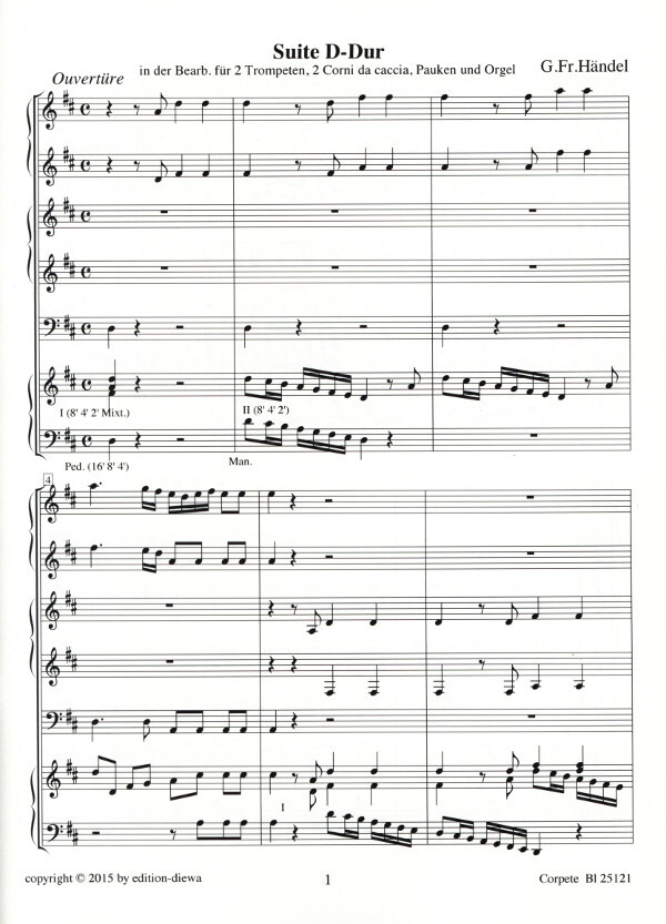 für 2 Trompeten, 2 Corni da caccia, Pauken + Orgel