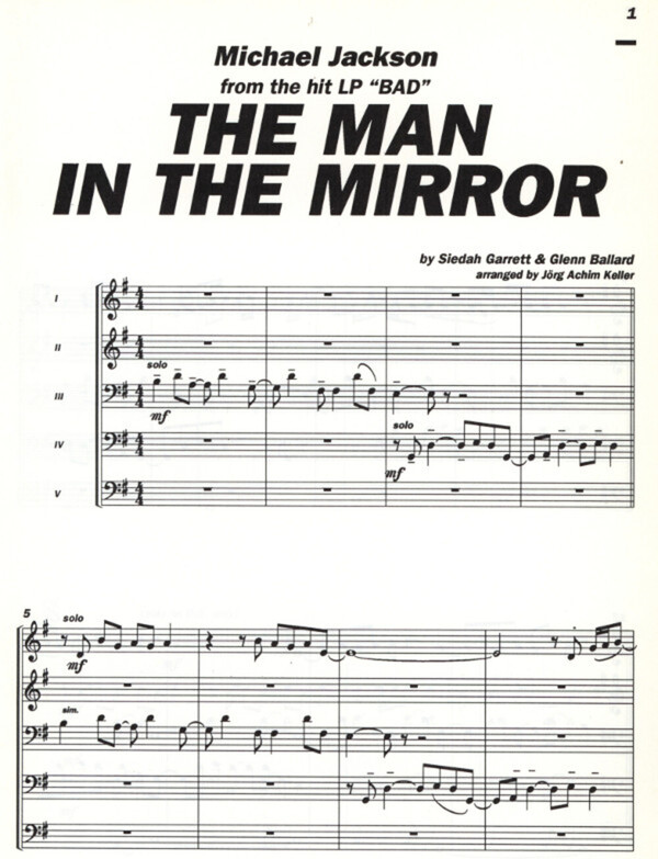 1. Stimme: Trompte/Flöte/Oboe/Violine/Blockflöte/Altsax 2.Stimme: Altsa/Trompete/Flügelhorn/Klarinette/Sopransax/Oboe/Viola/Blockflöte 3.Stimme: Horn in F/Posaune/Bariton;Cello/Fagott/Tenorsax//Tenorhorn/Altsax 4. Stimme: Tenorhorn/Tenorsax/Bariton/Posaune/Cello/Fagott
