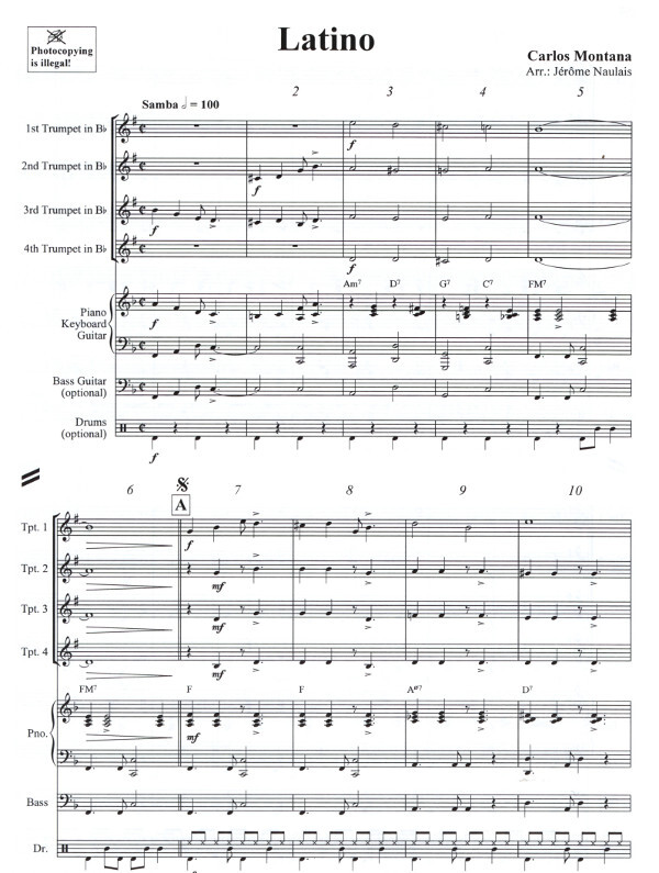 für 4 Trompeten in B/C + Klavier (+ Gitarre/Bassgitarre/Drums ad lib.)