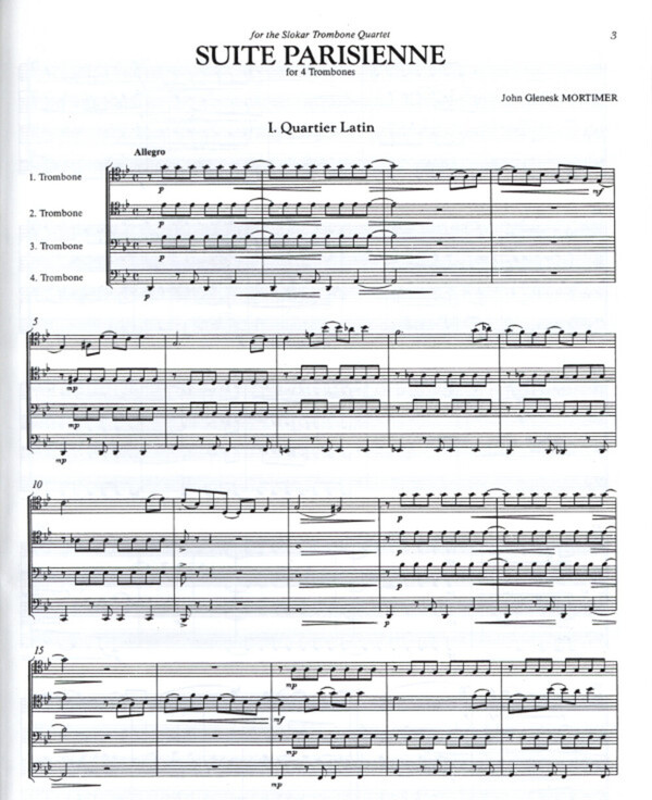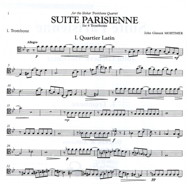 (für Slokar-Posaunen-Q uartett, 3 Sätze benannt nach bekannten Stätten in Paris: Quartier Latin - Au Bois de Boulogne - Moulin Rouge, Pos 1 + 2 im Tenor-, Pos 3 + 4 im Baßschl.)