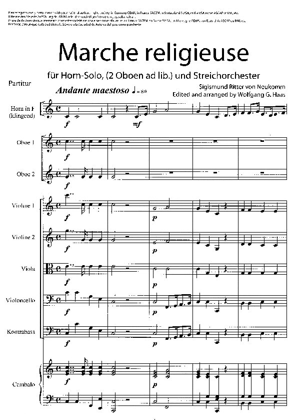 für Horn in F/B (Corno da Caccia), 2 Oboen ad lib. + Streicher