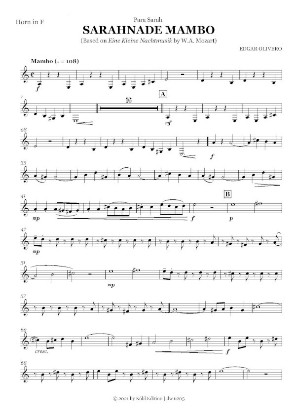 Sarahnade Mambo based on "Eine kleine Nachtmusik" by W.A. Mozart | Notendownload