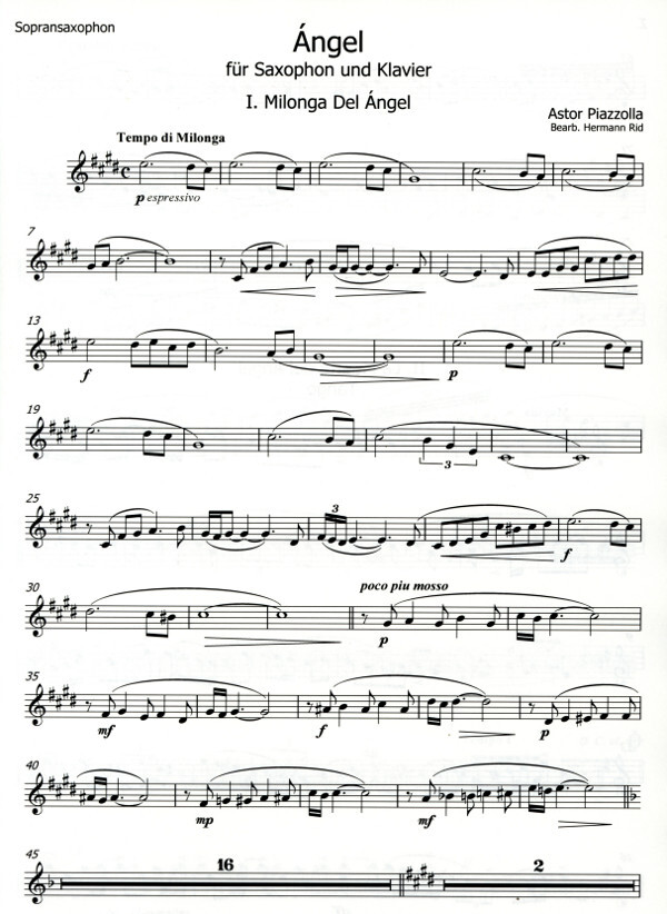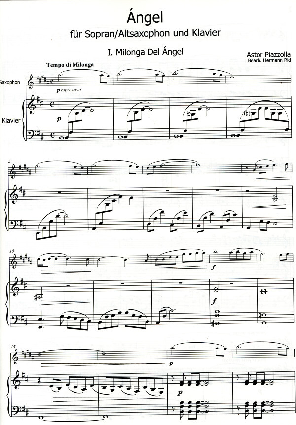 interessantes Stück von Piazzolla in einer gelungenen Fassung für Sopran- oder Altsaxophon und Klavier