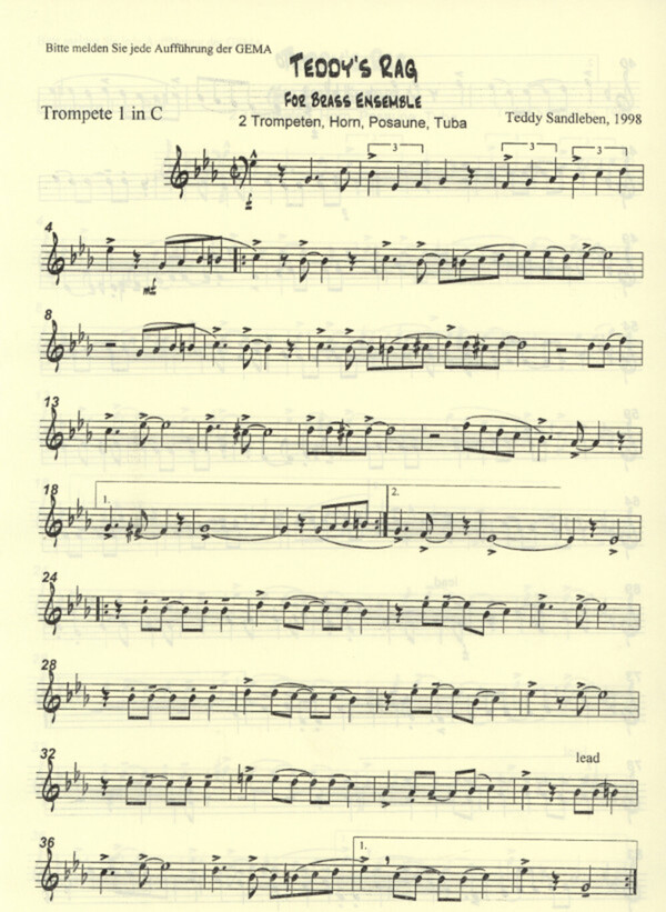 für 2 Trompeten, Horn (Trompete), Posaune (Tenorhorn) + Tuba