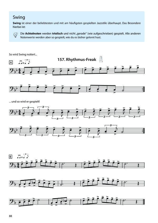 " Zahlreiche Solostücke, Duette, Übungen und Etüden aus verschiedensten Stilrichtungen sorgen für Abwechslung und Motivation und fördern gleichzeitig die technischen und musikalischen Fähigkeiten. " Rhythmusübungen zur Schulung des Rhythmusgefühls.