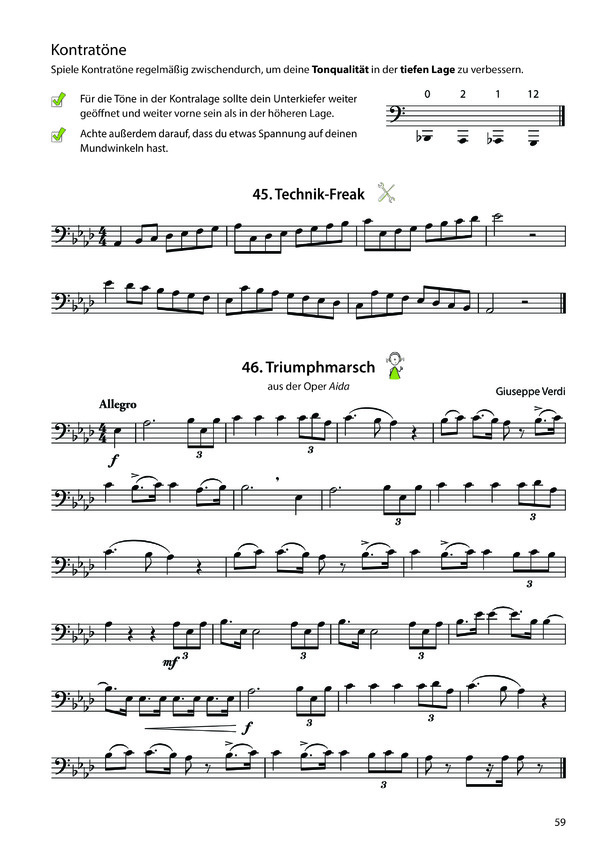 Zahlreiche Stücke, Duette, Rhythmusübungen und Tonleiterstücke mit praxisnahen Spielanweisungen