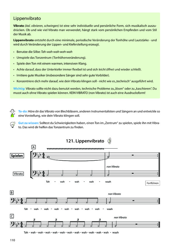 Übeplan und Praxistipps für eigenständiges Lernen Methodische Piktogramme, die den Hauptschwerpunkt eines Stückes oder einer Übung anzeigen