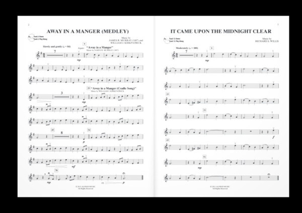 This book is part of an instrumental series arranged for Flute, Clarinet, Alto Sax, Tenor Sax, Trumpet, Horn in F, and Trombone. The arrangements are completely compatible with each other and can be played together or as solos. Each book contains a carefully edited part that is appropriate for the level 1 player, as well as a fully orchestrated accompaniment CD. The CD includes a DEMO track of each song, which features a live instrumental performance, followed by a PLAY-ALONG track. Titles: Angels We Have Heard on High * Away in a Manger (Medley) * Come, Thou Long-Expected Jesus * Go, Tell It on the Mountain * We Three Kings * Hark! The Herald Angels Sing * It Came Upon a Midnight Clear * Joy to the World * O Come All Ye Faithful * O Come, O Come, Emmanuel * O Little Town of Bethlehem * Silent Night * The First Noel * What Child Is This? "As most musicians can attest, sometimes sheet music can oversimplify a familiar song, rendering it hard on the ears. However, Alfred Music has done a tremendous job arranging these pieces."