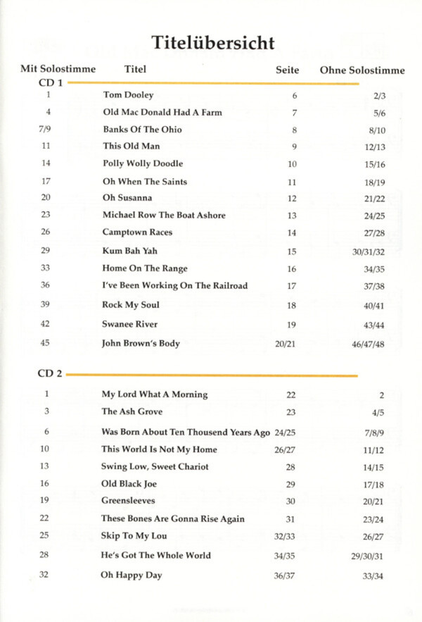 alle Titel sind in auf der CD in 2 Tempi enthalten, ebenso die Klavierstimme im PDF Format zum Ausdrucken