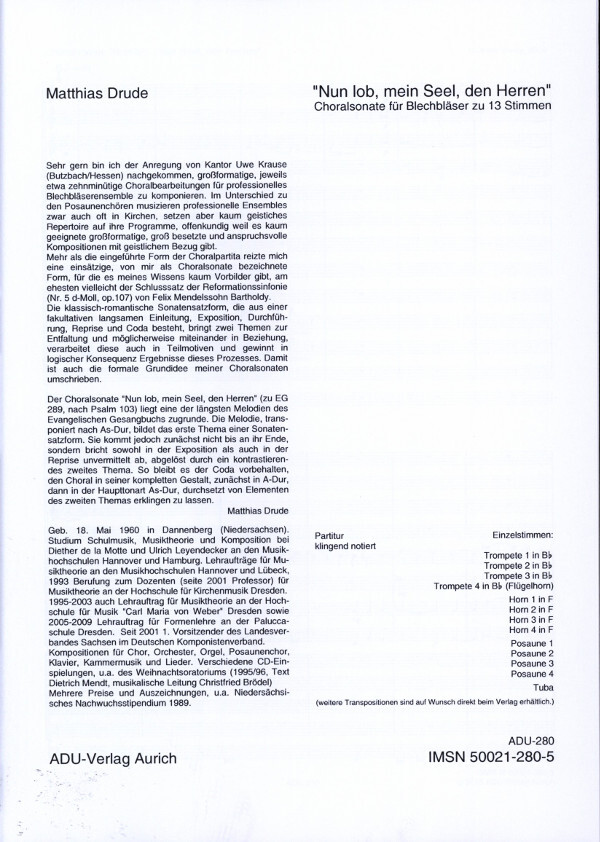 Nun lob, mein Seel, den Herren (Choralsonate)