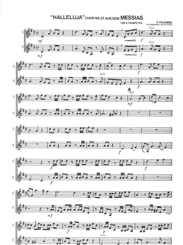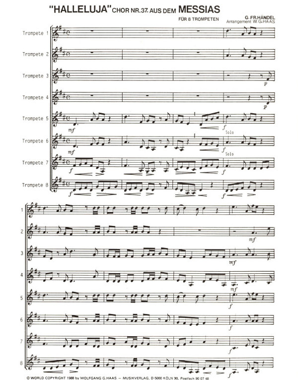 -Messias HWV 56- Halleluja-Chor: Nr. 37 für 8 Trompeten (Klarinetten) für ein Ensemble von 8 gleichen Instrumenten (Trompeten, Klarinetten), Ed. & arr. by Wolfgang G. Haas
