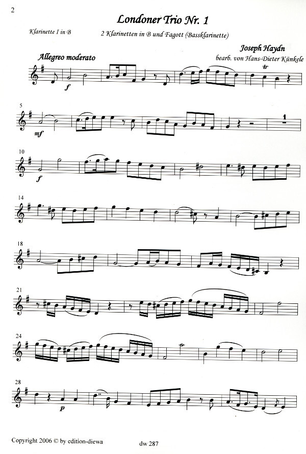 für 2 Klarinetten in B und Bassklarinette (Fagott)