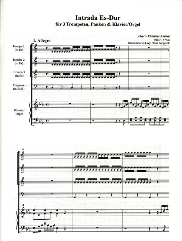 für 3 Trompeten in Es, Pauken und Klavier (Orgel)