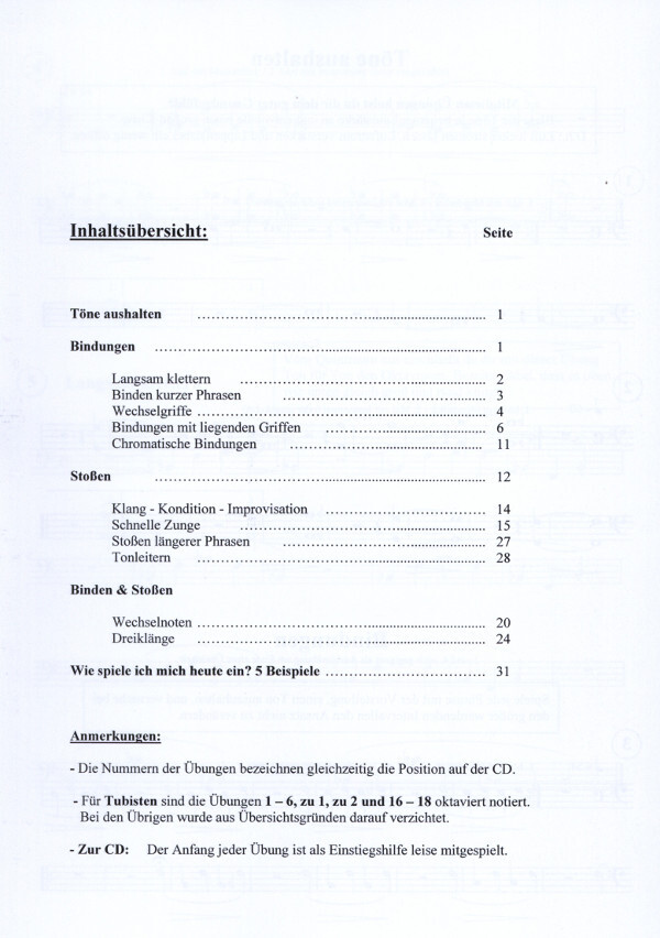 Das Einspielheft für Blechbläser Töne aushalten Bindungen Stoßen Binden & Stoßen Beispiel wie spiele ich mich heute ein