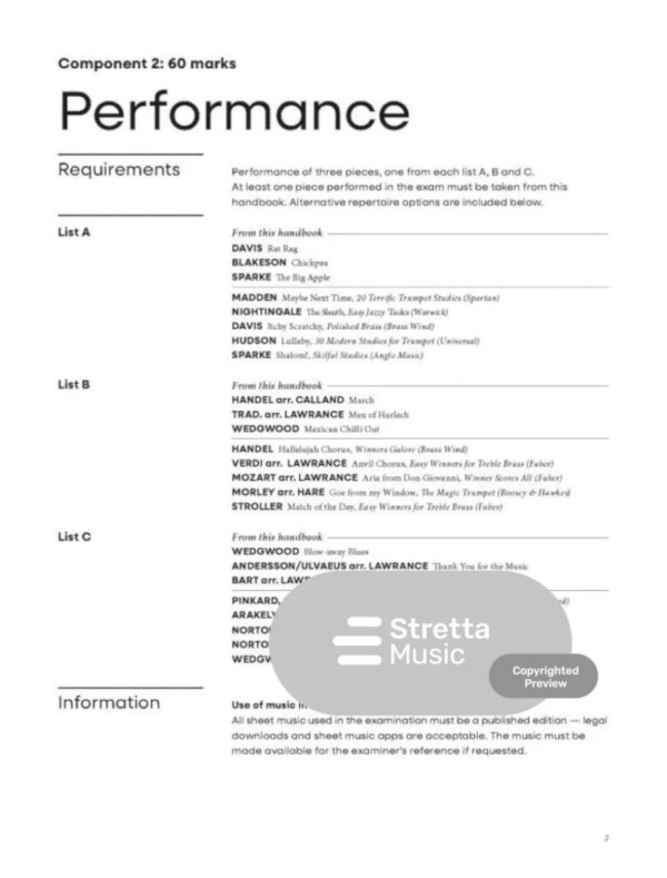 Designed for developing brass players, this handbook is part of a comprehensive series covering Steps through Grade 8 for LCME Trumpet, Cornet & Flugelhorn exams. It includes a wide range of carefully selected performance pieces in diverse styles (from classical to contemporary, with helpful composer notes and performance tips), all required technical exercises updated for modern teaching approaches, sample sight reading and aural tests, and discussion guidance basically, everything you need for Grade 2! Available in both physical and digital formats, it's perfect whether you're taking an LCME brass exam or simply advancing your brass skills.