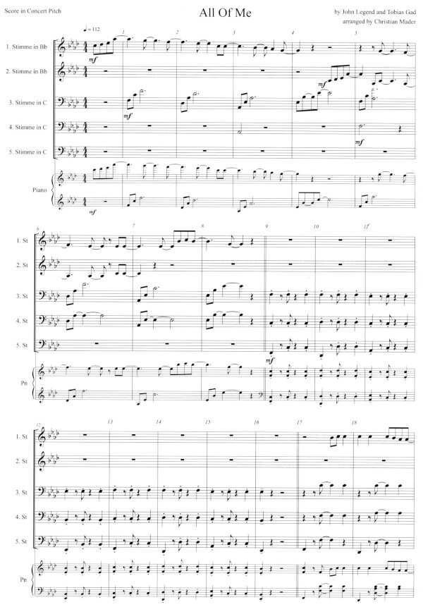 3. Stimme: Horn in F und Es / Tenorhorn/ Posaune/ Euphonium in C 4. Stimme: Horn in F und Es/Euphonium in B und C/ Posaune 5. Stimme: Bassposaune/ Tuba/ Euphonium/ Sousaphon
