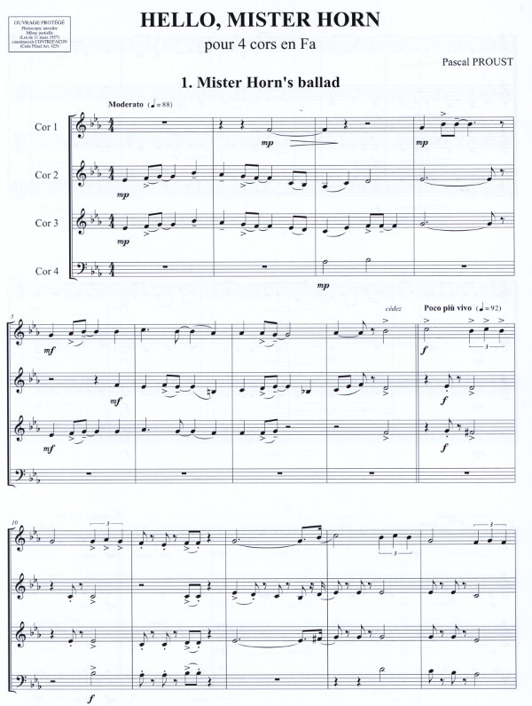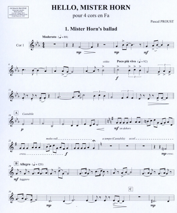 in 3 Sätzen Mister Horn's Ballad Mister Horn's Dream Mister Horn's Dance 1. Hornstimme bis e" 4. Horn im Baßschlüssel