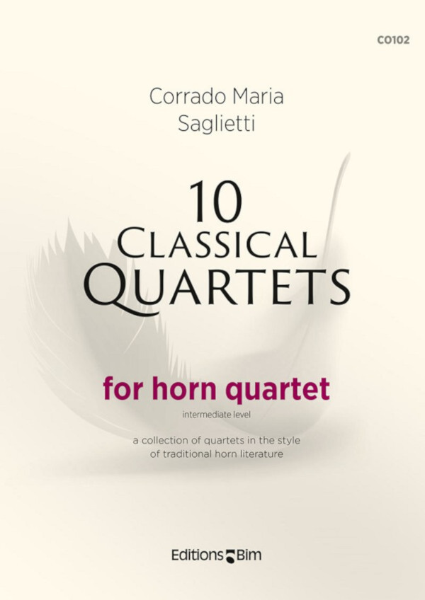 10 Classical Quartets ist eine Sammlung von Stücken im traditionellen Stil der Hornquartett Literatur, reichlich detailliert, in komfortablem Tonumfang, mit leichten Melodien und viel Kontrapunkt, damit jede Stimme auf- und anregend zu spielen ist.