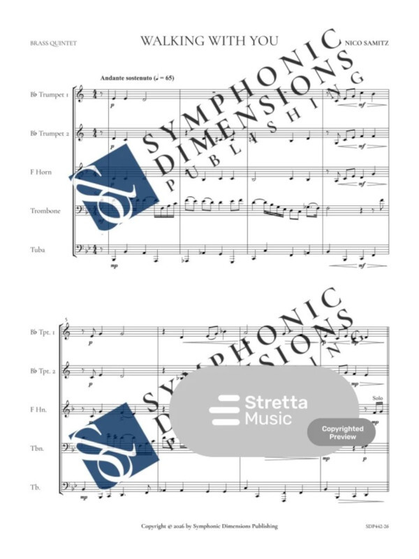 Mit Walking with You legt Nico Samitz ein neues Werk für Brass-Quintett vor. Seit über zehn Jahren schreibt er Musik für das Ensemble BlechReiz BrassQuintett, in dem er selbst Trompete und Klavier spielt stilistisch reicht sein Schaffen von klassisch über Jazz bis hin zu meditativen Klangwelten. Geprägt durch sein Studium am Mozarteum Salzburg sowie seine Erfahrungen als Trompeter bei großen Orchestern, verbindet Walking with You persönliche Ausdruckskraft mit stilistischer Offenheit. Im Mittelpunkt steht der Wunsch, Emotionen musikalisch zu teilen direkt, ehrlich und nahbar.
