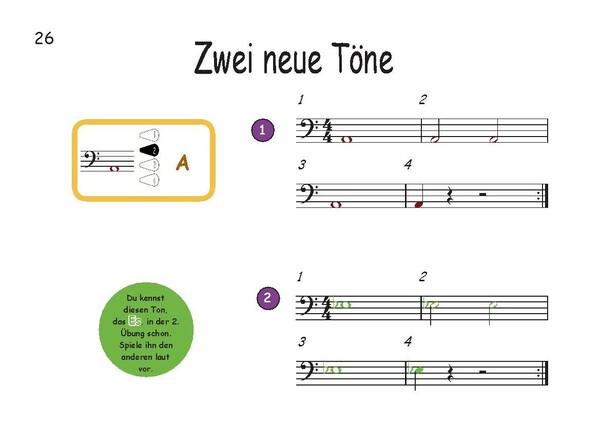 Neben dem bewährten Farbenkonzept, den großen Notenbildern und dem mehrstimmigen Musizieren kommt folgendes dazu: