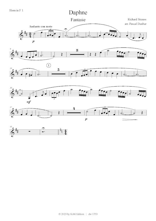 sehr gelungene Bearbeitung für 8 Hörner der bekannten Oper Daphne von Richard Strauss