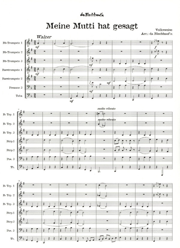 Volksweise da Blechhauf'n-Reihe für 2 Trompeten (Gesang) Trompete (Piccolo-Trompete) 3 Bass-Trompeten in B/Posaunen (Gesang ) + Tuba (Gesang)
