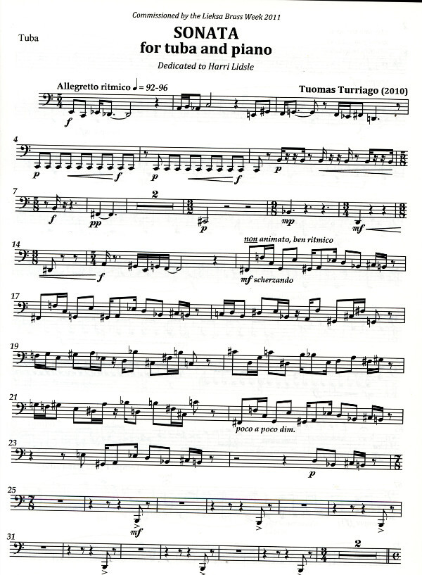 A work commissioned by the Lieksa Brass Week 2011. It is repertoire for the International Tuba Competition held in Lieksa in July 2013.