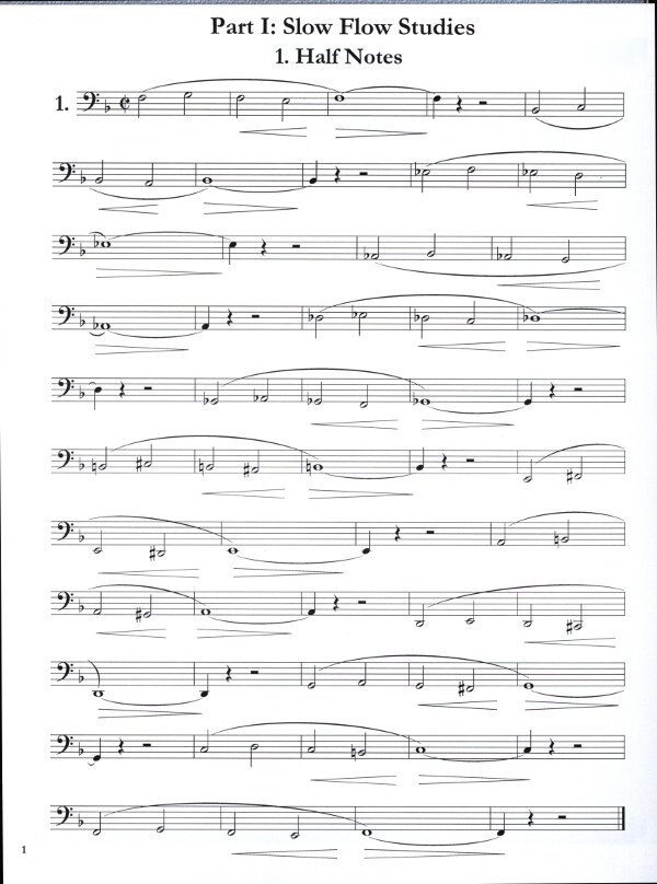 is a book of 42 phrasing studies with a recommended practice rotation. If you follow the rotation, you will spend about 10 minutes a day playing flow studies. By doing this regularly over time, your phrasing will improve and you will learn how to comfortably move air through the ends of phrases