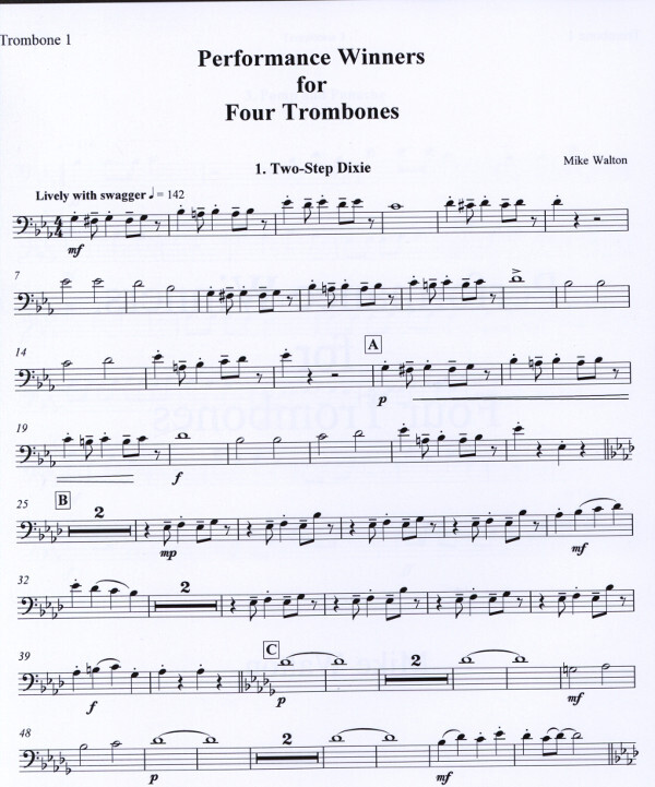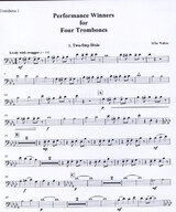 (für ein Anfängerquartett geschrieben, kleiner Tonumfang, viele eingängige und sich wiederholende Rhythmen um Vertrauen in der Gruppe aufzubauen) für Posaune (oder Trompete), Posaune, Posaune (oder Horn in F) + Posaune