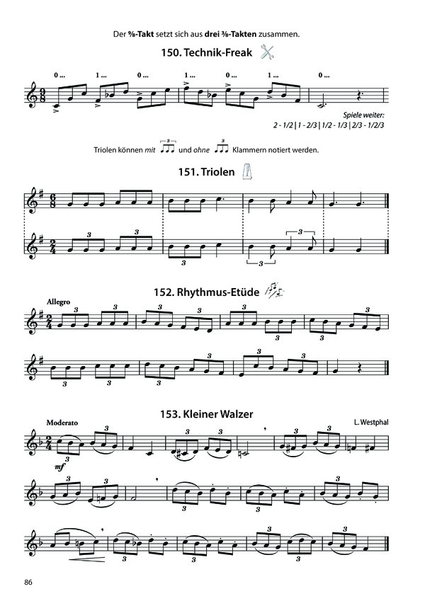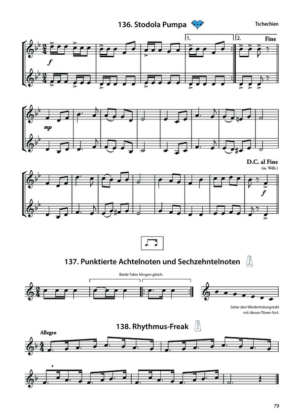 " Zahlreiche Solostücke, Duette, Übungen und Etüden aus verschiedensten Stilrichtungen sorgen für Abwechslung und Motivation und fördern gleichzeitig die technischen und musikalischen Fähigkeiten. " Rhythmusübungen zur Schulung des Rhythmusgefühls.