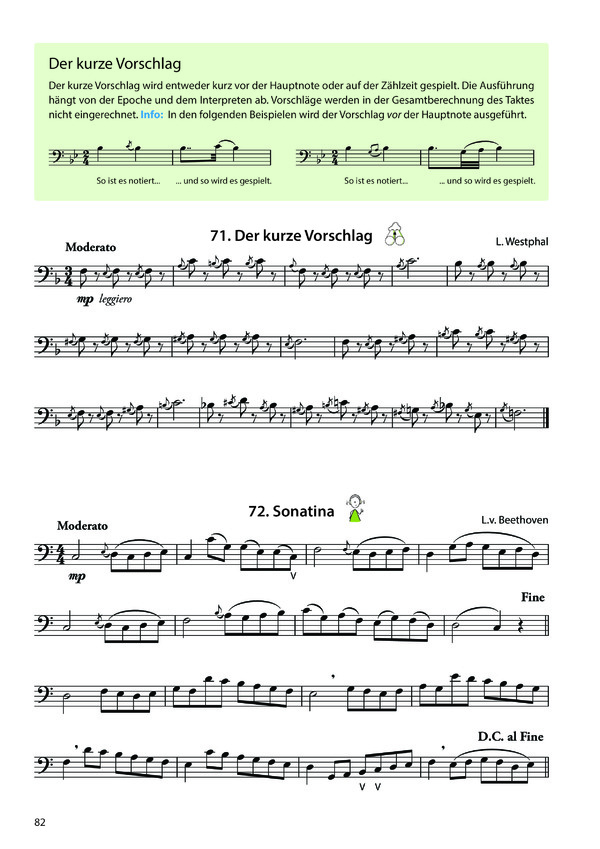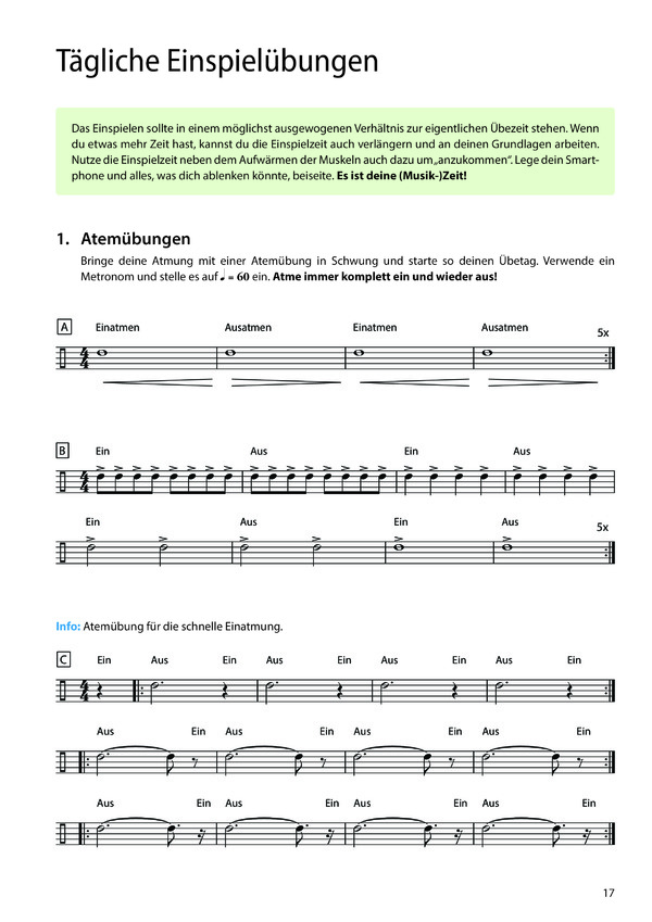 Zahlreiche Stücke, Duette, Rhythmusübungen und Tonleiterstücke mit praxisnahen Spielanweisungen